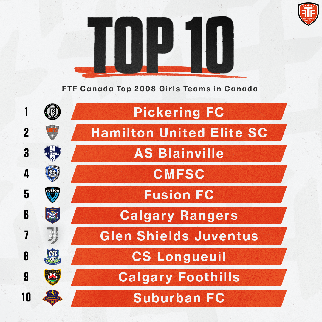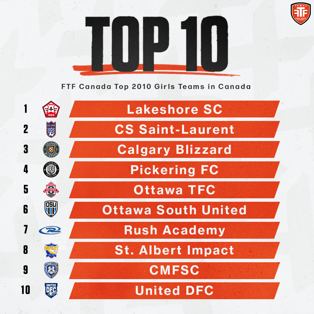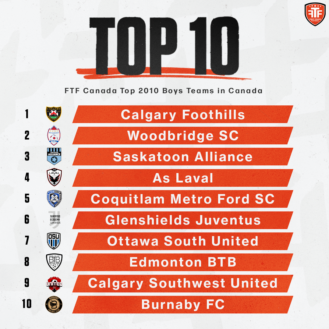 As of August 2025, FTF Canada’s “The Playbook” spotlighted the top-performing U-15 boys teams (born in 2010) across the country. These rankings are driven largely
