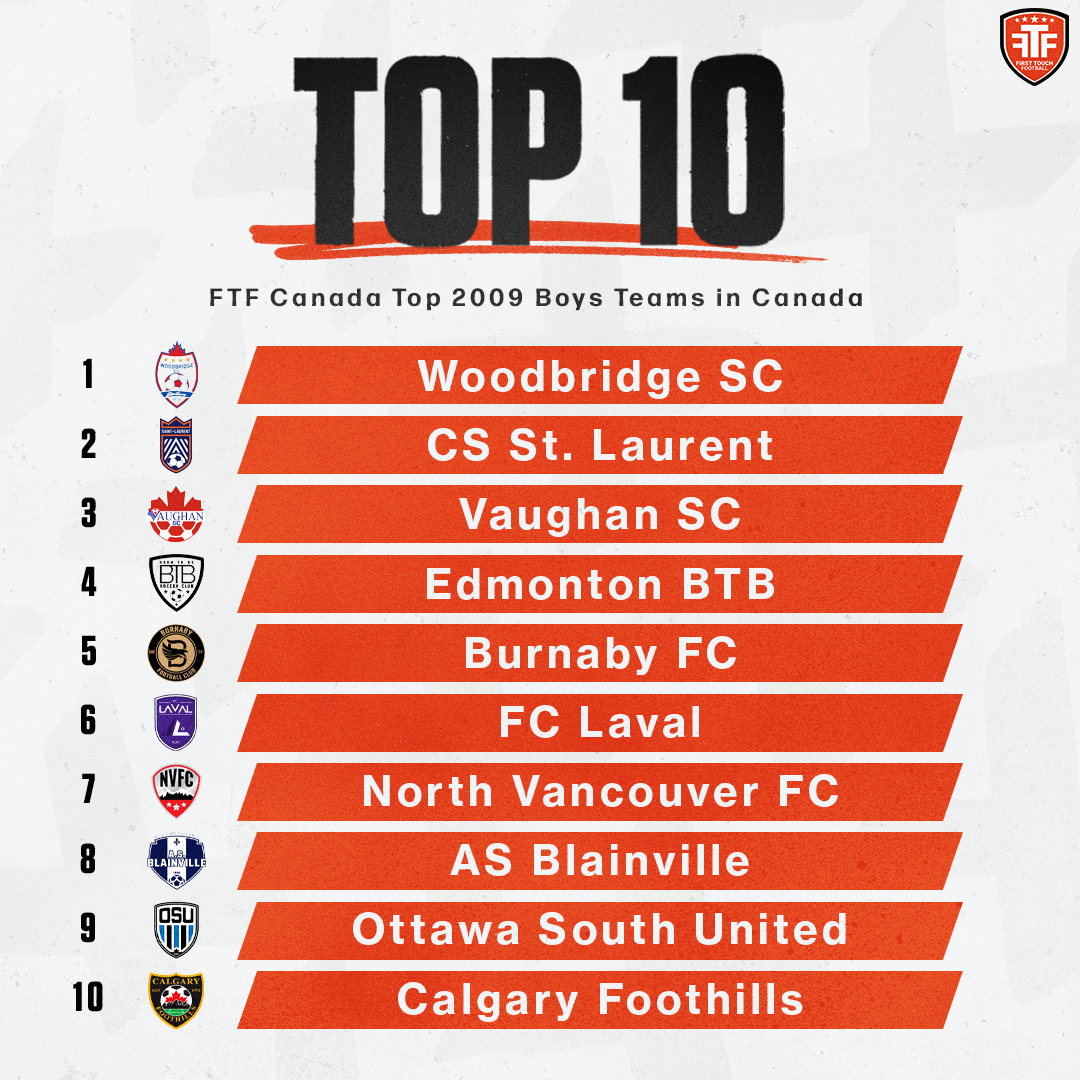 As of August 2025, FTF Canada’s “The Playbook” spotlighted the top-performing U‑16 boys teams (born in 2009) across the country. These rankings reflect exceptional results