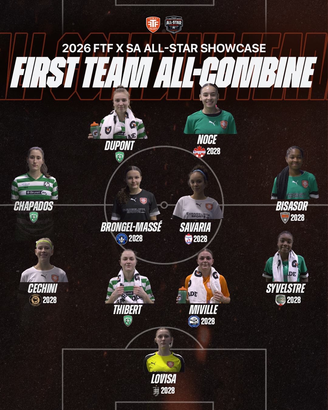 First Team All Combine: GK – Lachlan Booth | Windsor TFC | 2026 Grad DEF – Mekhi Baker | Whitby FC | 2026 Grad DEF