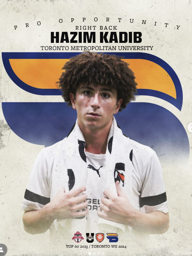 A product of Toronto FC Academy, Kadib earned his opportunity through standout performances at the Top 60 2023 and Toronto Winter Combine 2024, where Toronto Metropolitan University staff were in attendance identifying top talent.